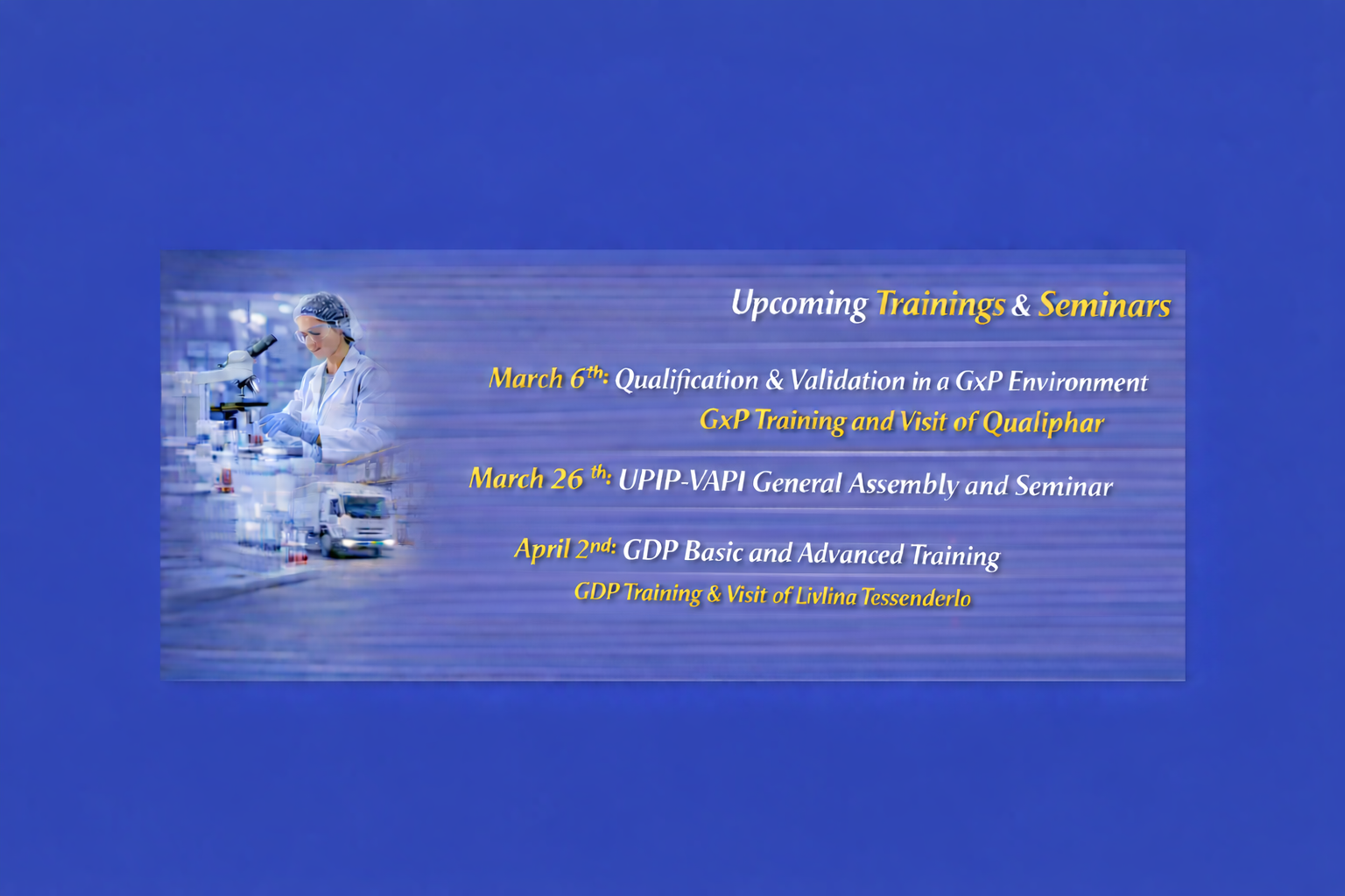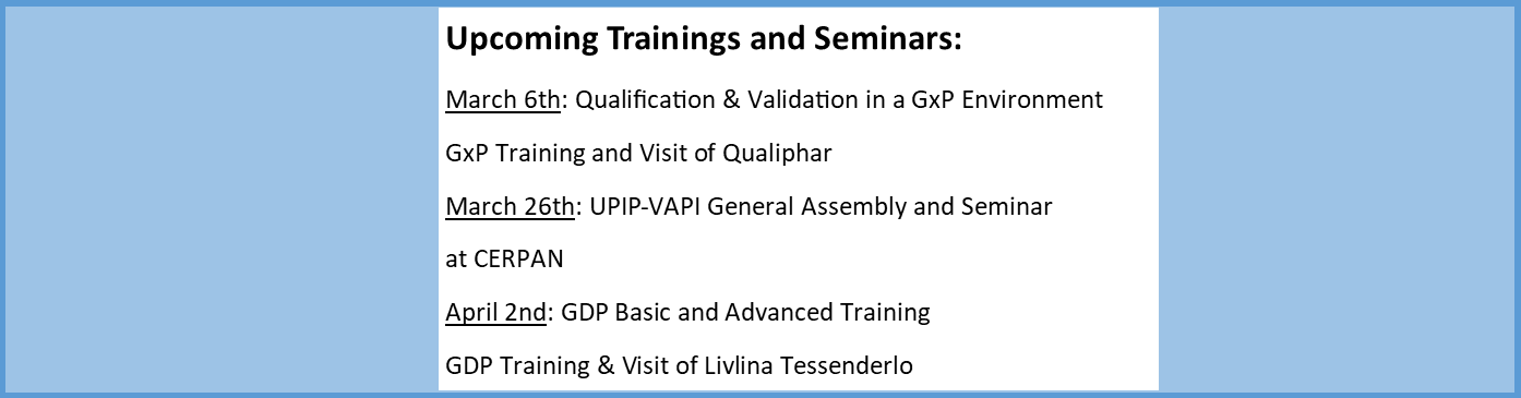 UPIP-VAPI is a professional Union which has a clear and progressive view on the pharmacist’s goal to guarantee the quality of all products manufactured by a pharmaceutical company. We are a platform for all pharmacists active in the pharmaceutical industry and for those interested in its activities. The organisation has over 300 members from all branches of the pharmaceutical industry.